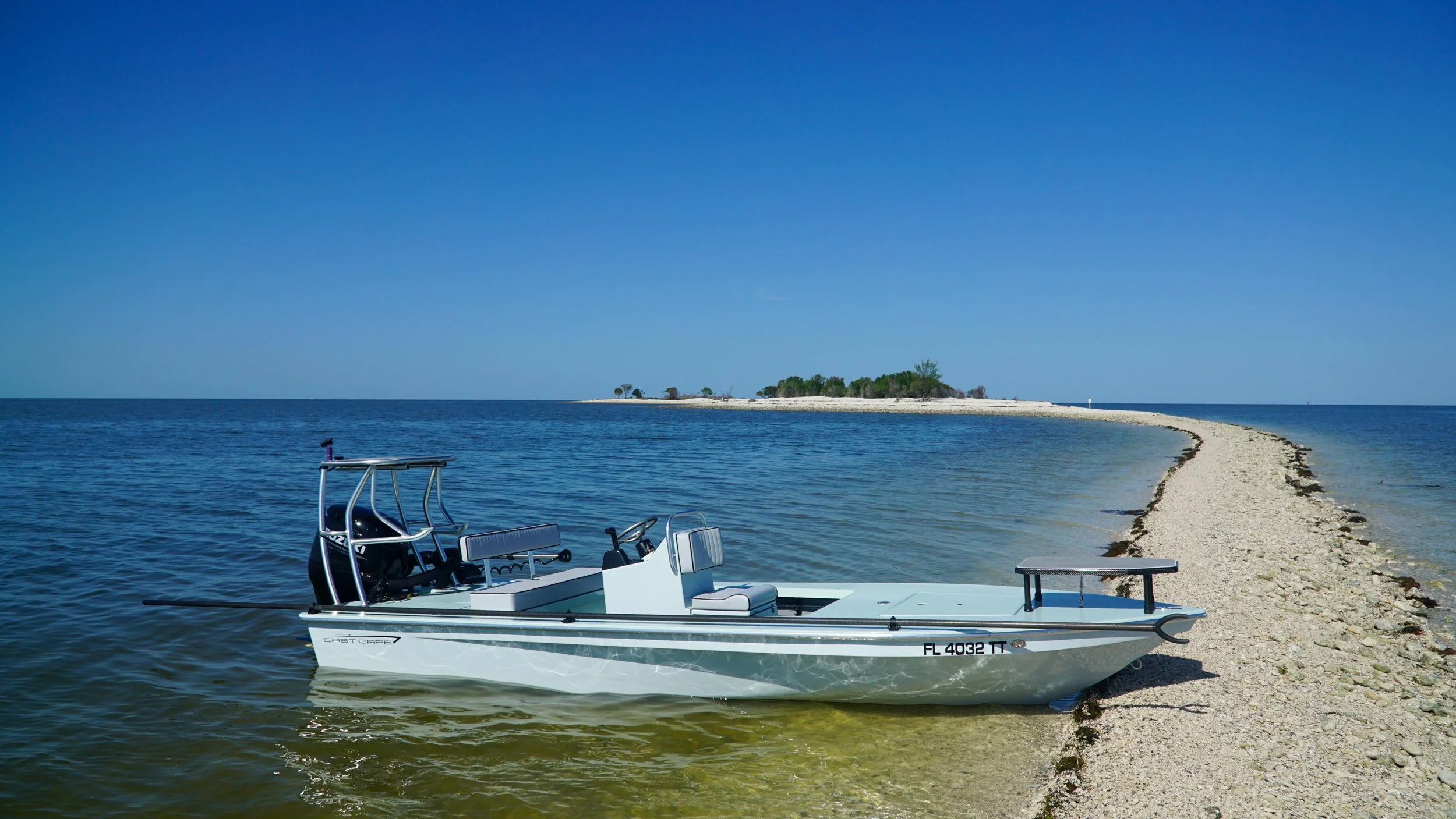 I am fortunate enough to be guiding out of my dream skiff, an East Cape Vantage! This boat, to me, is the most versatile boat I have ever been in. I can run the open water that a lot of the smaller skiffs can't, and can still fish right next to them on the skinniest of flats we have on the Nature Coast. This boat is 19' 2" long and has a beam of 79". This means for my anglers that they have a very comfortable and dry ride, and a very stable platform to fish from. On top of being a fun skiff to ride in, it is also a fishing machine! The draft on this boat is very shallow, 7"-8" with 2 anglers and gear in fact. That allows me to get into the shallowest of places with it, all while being dead quiet while I pole the boat. This is extremely important along in Crystal River because of all the very shallow flats and shorelines that we fish. I have a forward casting platform on the boat to allow my anglers to see the fish farther away from the boat. A lean bar may be added for stability and comfort on the platform for the angler, just in case it is a bit bumpy while we’re fishing for some of the migratory fish offshore of Crystal River and Homosassa. I think you will enjoy your time aboard this very high quality boat!